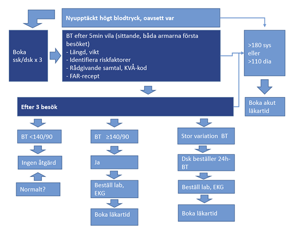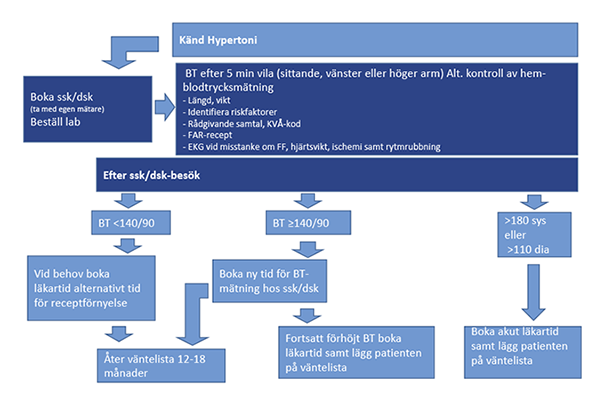 Flödesschema vid nyupptäckt respektive känd hypertoni