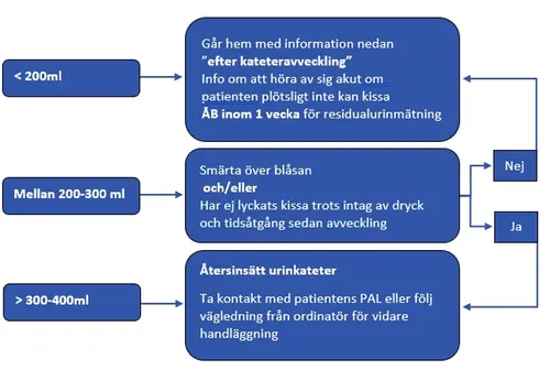 Notera att inga blåsträning behövs inför avveckling, instruktioner hur katetern avvecklas finns i Vårdhandboken.