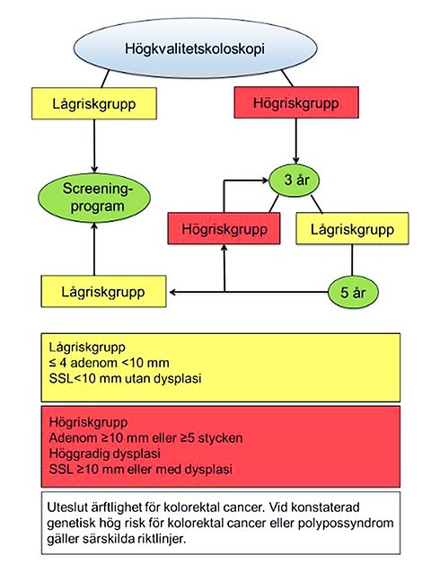 Det finns otillräcklig evidens för att uppföljning efter 80 års ålder ökar överlevnaden i kolorektal cancer. Koloskopi hos patienter >75 år medför ökad risk för komplikationer som leder till sjukhusvård. Därför rekommenderas att polypvårdprogrammet avslutas efter 80 års ålder samt tidigare vid allvarlig komorbiditet.